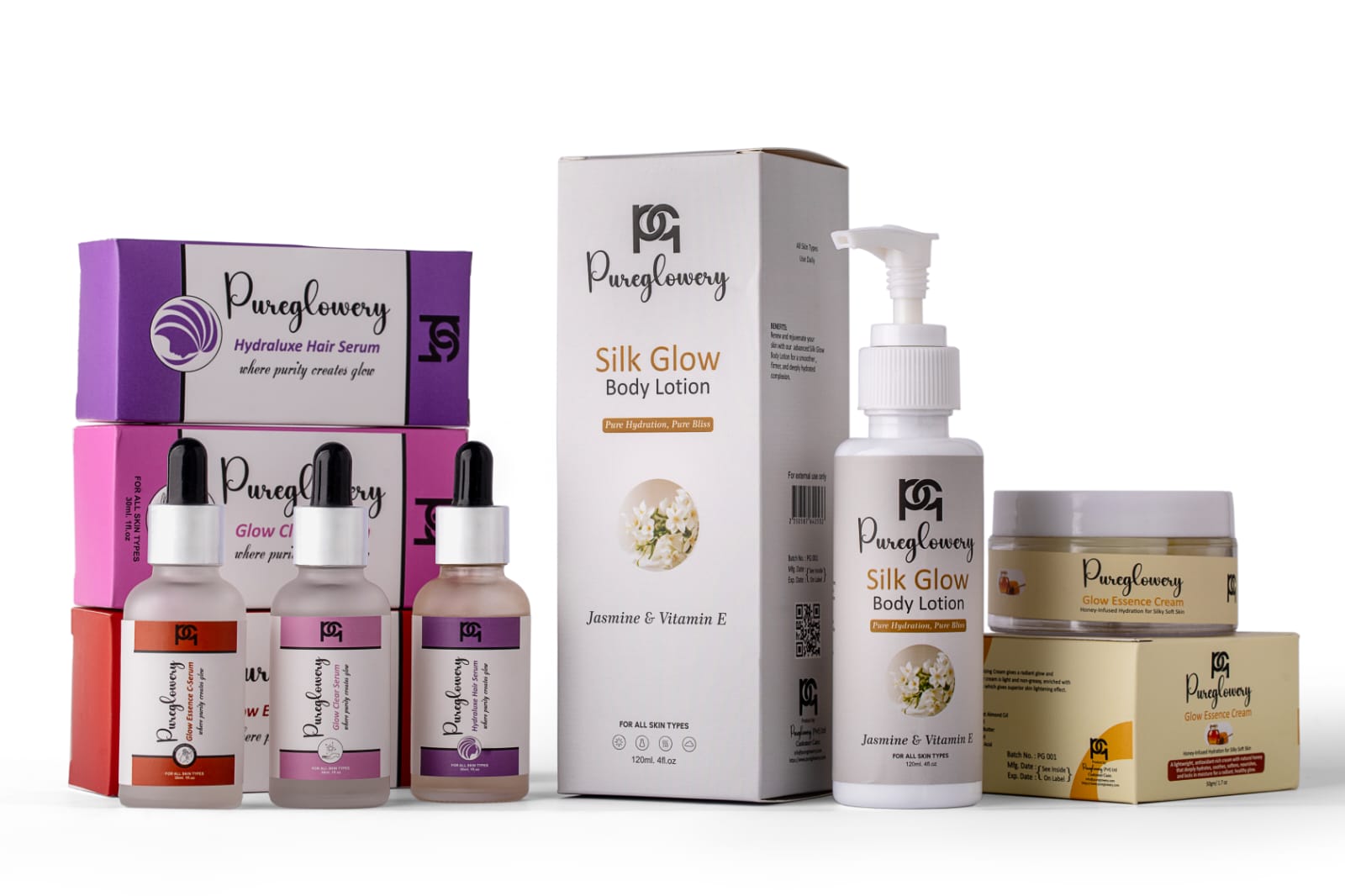 Indulge your skin in silky softness with Silk Glow Body Lotion, infused with the delicate essence of Jasmine. This luxurious blend of Aloe Vera, Almond Oil, Jojoba Oil, Shea Butter, and Glycerin delivers deep moisturization, lasting hydration, and a naturally radiant glow. Enriched with Vitamin E, Vitamin B3, and Essential Oils, it nourishes, soothes, and enhances your skin’s texture—leaving it irresistibly soft, smooth, and beautifully scented.