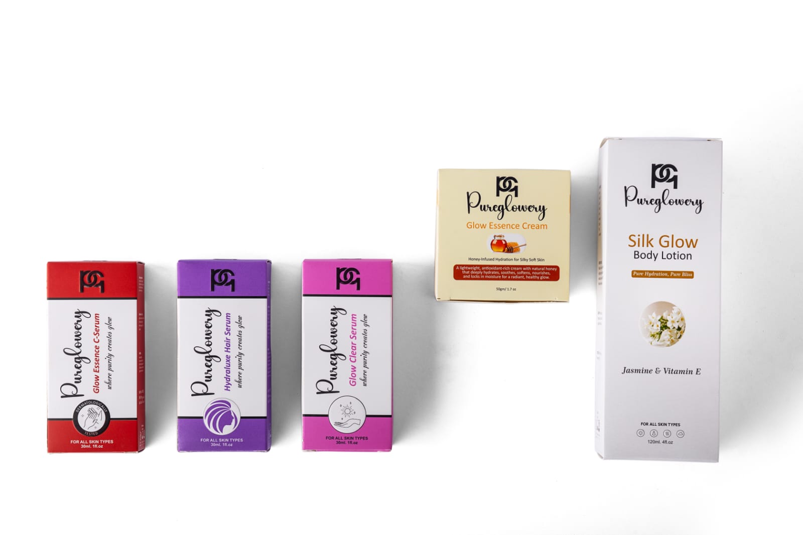 Cleanse your face thoroughly and pat dry. Take a small amount of the Glow Essence Cream. Gently apply it to your face and neck in circular motions. Massage until fully absorbed into the skin. Use twice daily for best results, morning and night.